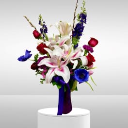 Price: $249.99Always Remember Red & White Floral Heart Tribute