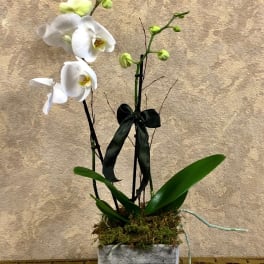 Price: $89.99Double Phalaenopsis Orchid Plant in plaster pot.